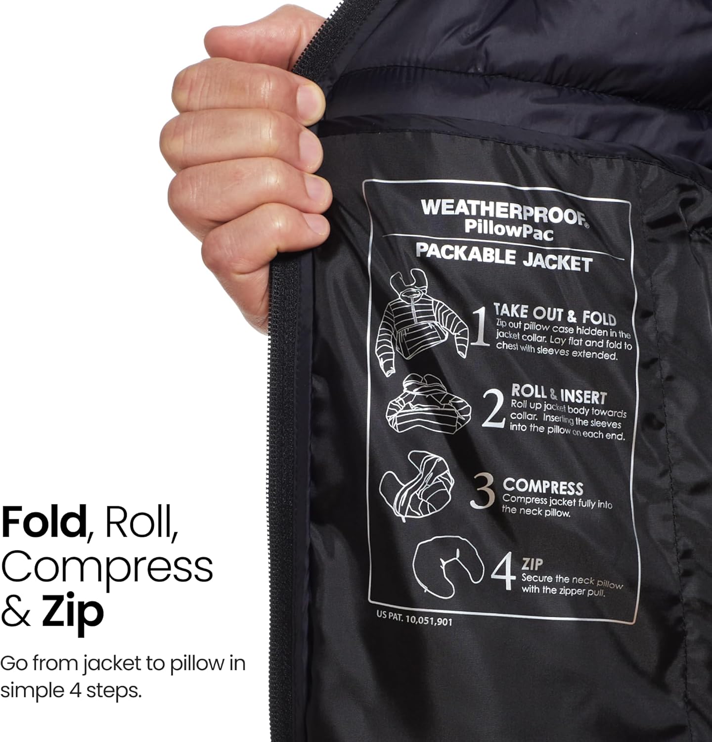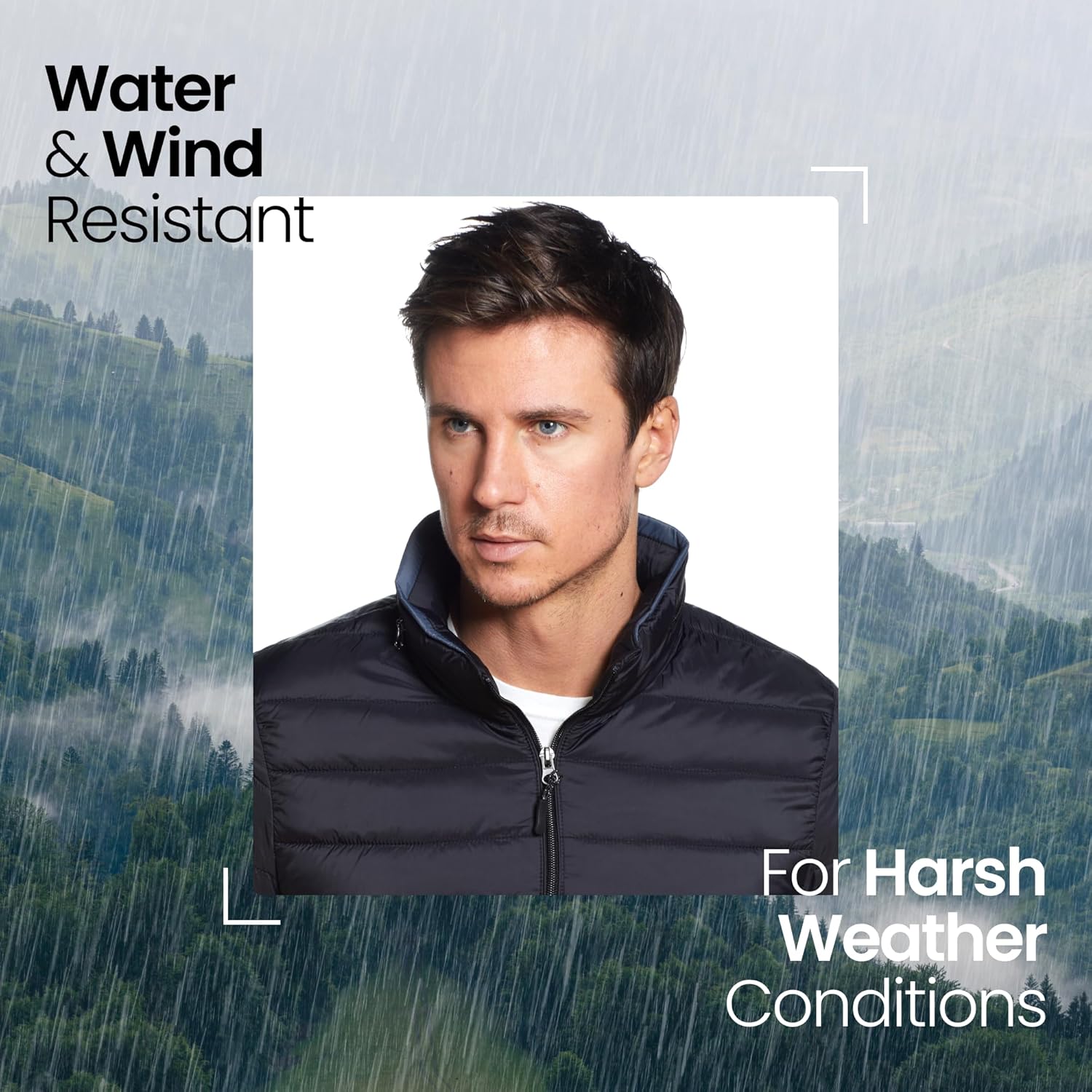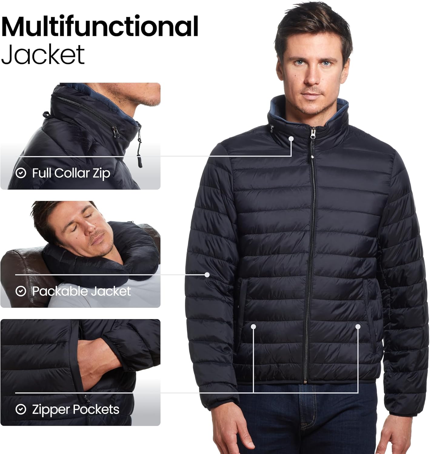 Men’s Puffer Jacket, Lightweight Wind Resistant Alternative Down Jacket with Packable Travel Neck Pillow (S-3XL)